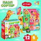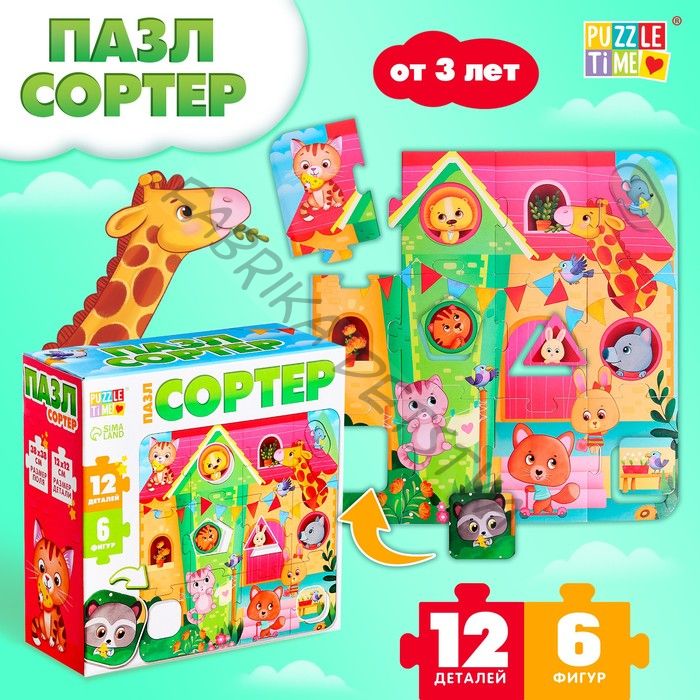 Пазл-сортер создан специально для малышей от 1 года. Это занимательная развивающая игра в новом формате. Необычные элементы привлекают внимание и стимулируют познавательную активность на более высоком уровне, чем детали классической формы. Особенности пазлов-сортеров Пазл состоит из 12 крупных деталей и 6 геометрических фигур. Малыш соберёт картинку размером 38 x 38 см и вставит картонные вкладыши в соответствующие отверстия. Размер одной детали: 12 x 12 см. Польза занятий с пазлом-сортером С такой игрой ребёнок познакомится с разными животными и научится находить связь между частью и целым. Крупные детали пазла с картонными вкладышами способствуют развитию визуально-пространственного интеллекта, а также мелкой моторики и сенсорики.