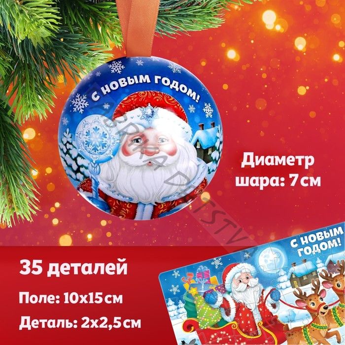 Пазл в ёлочном шаре «Дедушка Мороз», 35 деталей