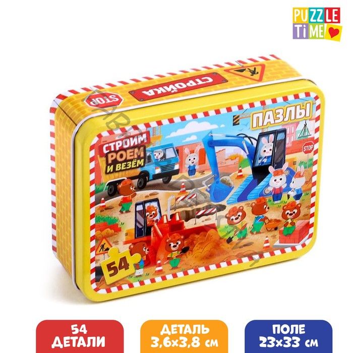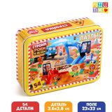 Пазл в металлической коробке «Строим, роем и везём», 54 элемента