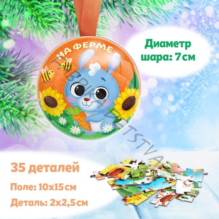 Пазл в металлическом шаре «Пушистые малыши», 35 элементов