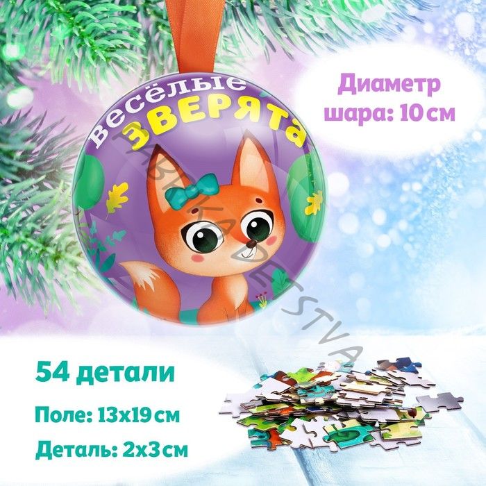 Пазл в металлическом шаре «Весёлые зверята», 54 детали