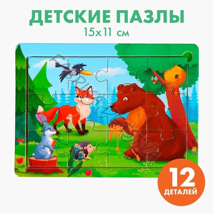 Пазлы деревянные «Лесные зверята», размер — 15x11 см, 12 элементов