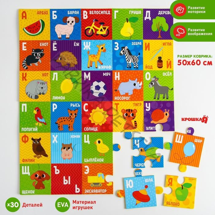 Пазлы мягкие для малышей Крошка Я «Алфавит», 30 деталей
