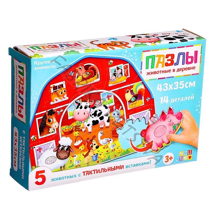 Пазлы с тактильными вставками «Животные в деревне», 13 деталей
