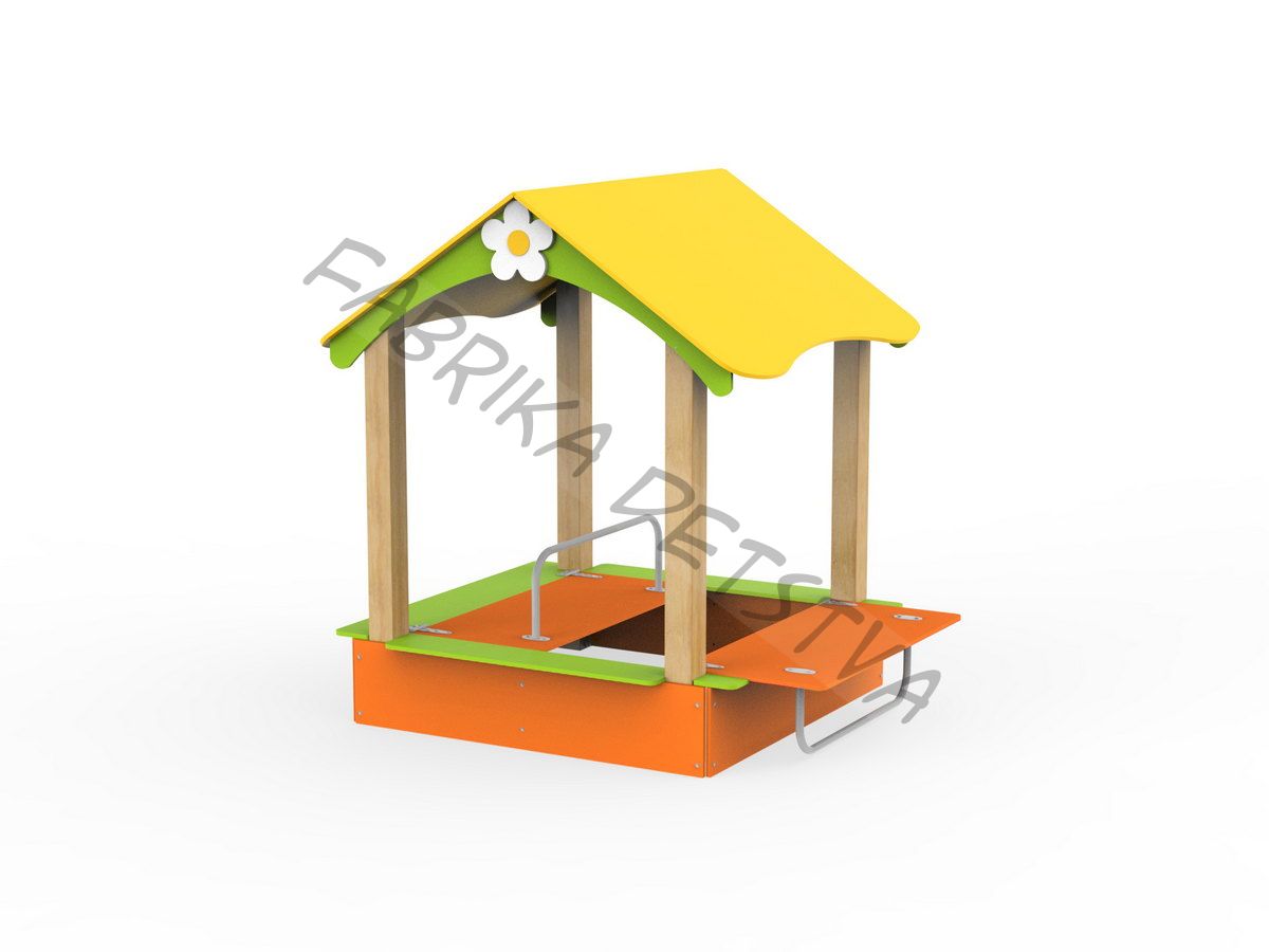 Песочница с крышками и навесом предназначена для организации детского досуга на детских площадках в детских садах, школах, парках, дворах и местах отдыха. Песочница представляет собой сборно-разборную конструкцию, состоящую из навеса, каркаса и двух полукрышек.