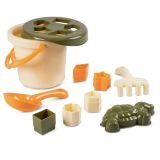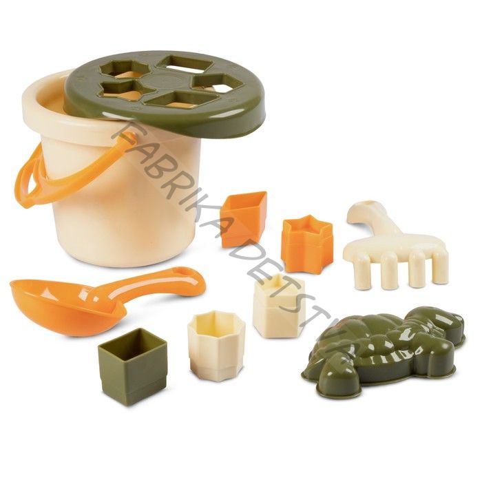 Песочный набор — сортер, 10 предметов: ведро, лопатка, грабли, формочка, 5 фигур, хаки-коричневый