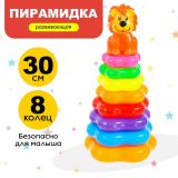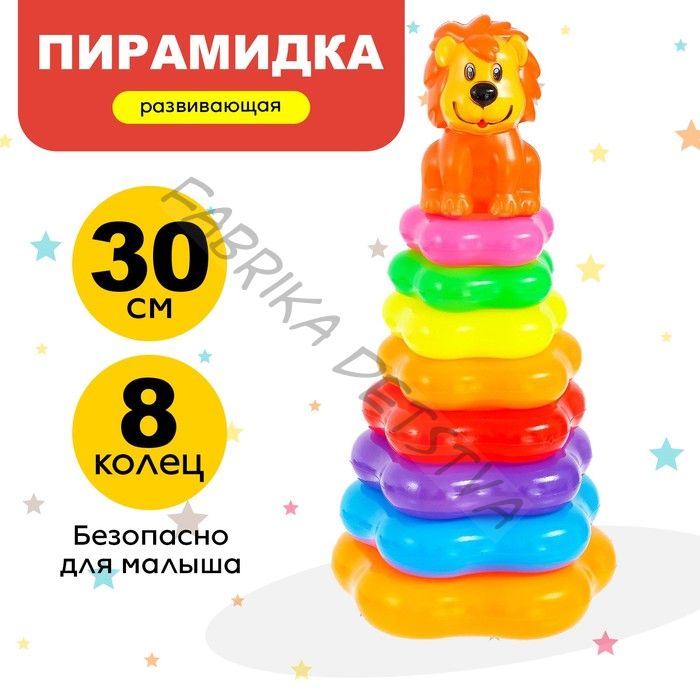 Игра с пирамидкой формирует у малыша представление о цветах и размерах предметов. В процессе занятий кроха разовьёт воображение, мышление, мелкую моторику рук и выучит цвета.