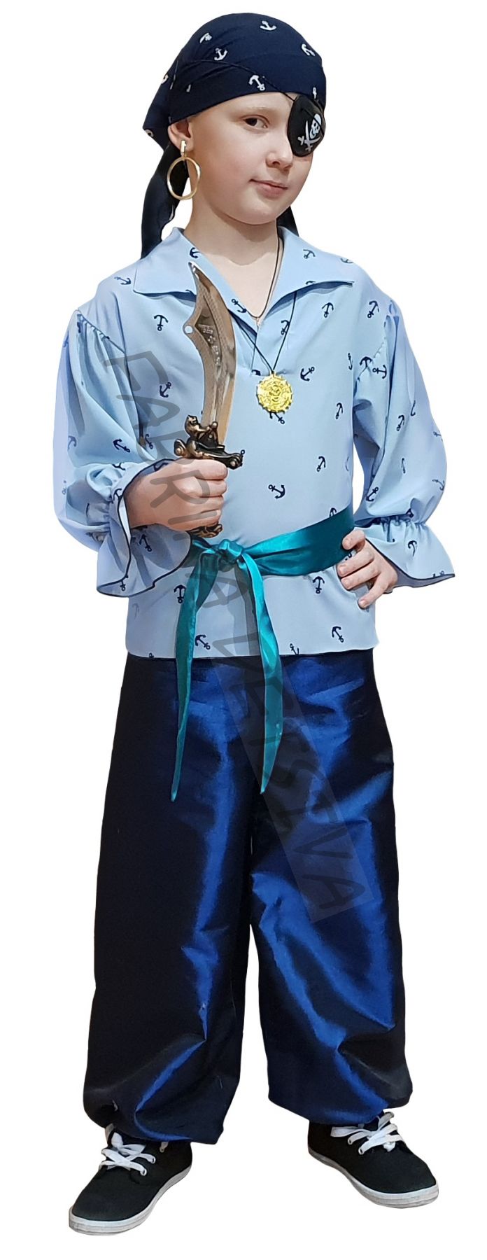 косынка, наглазник, серьга, сорочка, пояс, брюки, кинжал.