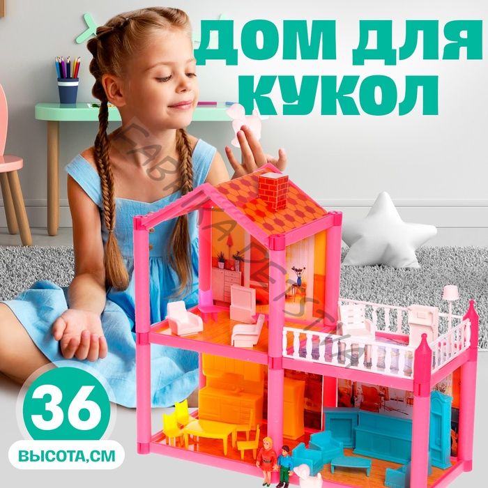 Подарите дочурке домик мечты Красочный кукольный домик приведёт малышку в неописуемый восторг и подарит незабываемые эмоции от увлекательной игры. Двухэтажная вилла оборудована всей необходимой мебелью. Дочурка устроит в домике уютную гостиную, просторную столовую и комфортную комнату отдыха, где будет весело играть со своими куколками. Изделие изготовлено из прочных экологичных материалов, такая игрушка прослужит долго и будет абсолютно безопасной для детских развлечений. Игры с домиком способствуют развитию цветового и эмоционального восприятия, воображения, мышления, тактильных ощущений и мелкой моторики. Товар предназначен для детей старше 3 лет.