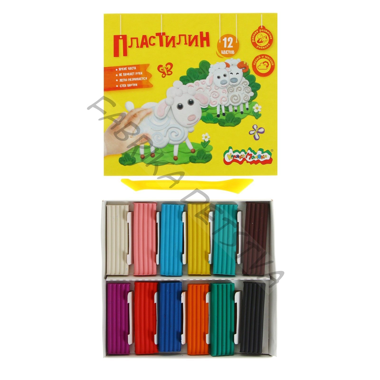 Пластилин «Каляка-Маляка»,12 цветов, 180 г, со стеком