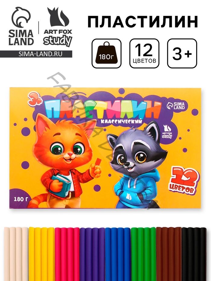 Пластилин 12 цветов, мягкий, 180 г