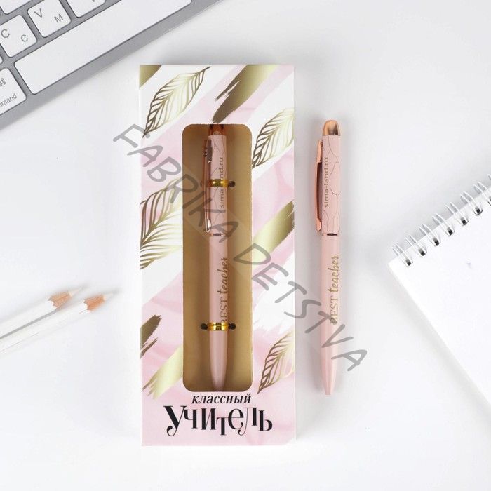 Подарочная ручка Best teacher, матовая, металл, цвет нежно-розовый, синяя паста