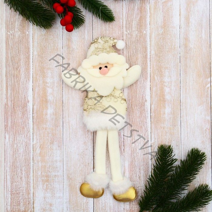 Подвеска мягкая на ёлку «Дед Мороз в костюмчике с цветами, длинные ножки» 8x24 см, золотистая