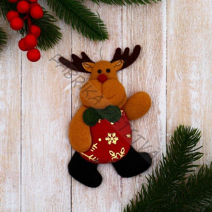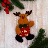 Подвеска мягкая на ёлку «Олень в костюмчике с узором» 7x12 см, красная