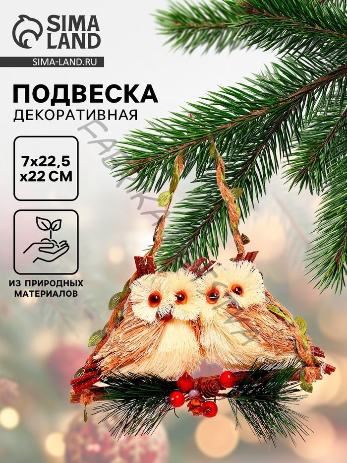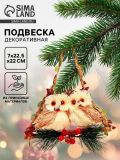 Подвеска новогодняя на ёлку «Совы на веточке» 7x22.5x22 см