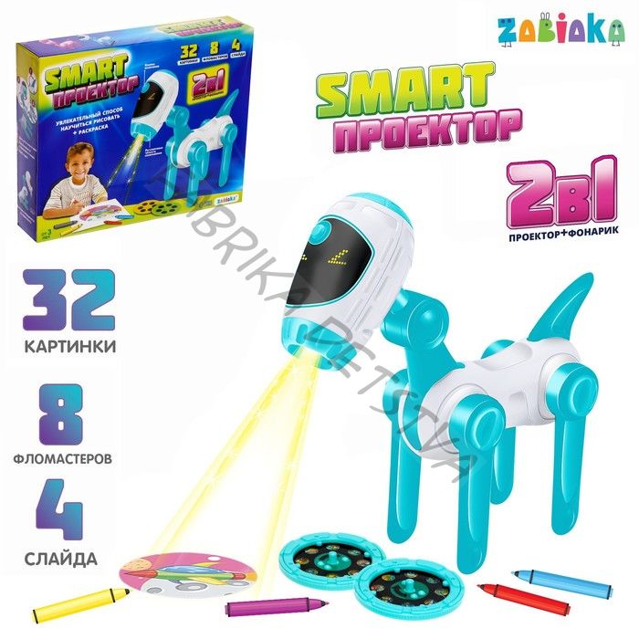 Проектор-лампа для рисования «Космическая собачка», 4 слайда, 32 картинки, 8 фломастеров, МИКС