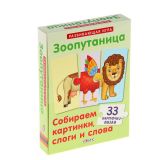 Развивающие карточки-пазлы «Зоопутаница: собираем картинки, слоги и слова», 33 карточки