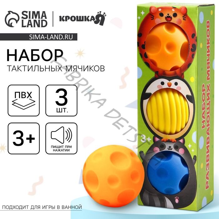 Развивающие тактильные мячики Крошка Я «Малыши-кругляши», с пищалкой, в наборе 3 шт.