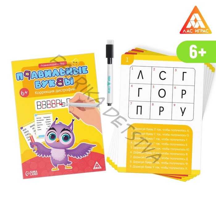 Развивающий набор «Правильные буквы. Коррекция дисграфии», маркер, 20 карточек, 6+