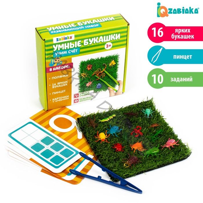 Развивающий набор «Умные букашки», 16 фигурок, полянка, по методике Монтессори, 3+