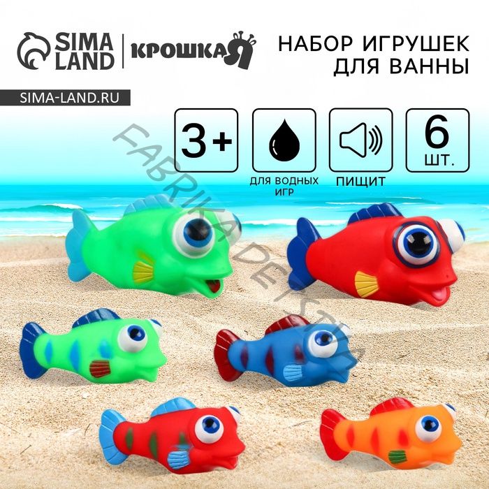 Резиновые игрушки для ванны Крошка Я «Рыбки лупоглазики», 12 см, с пищалкой, в наборе 6 шт.