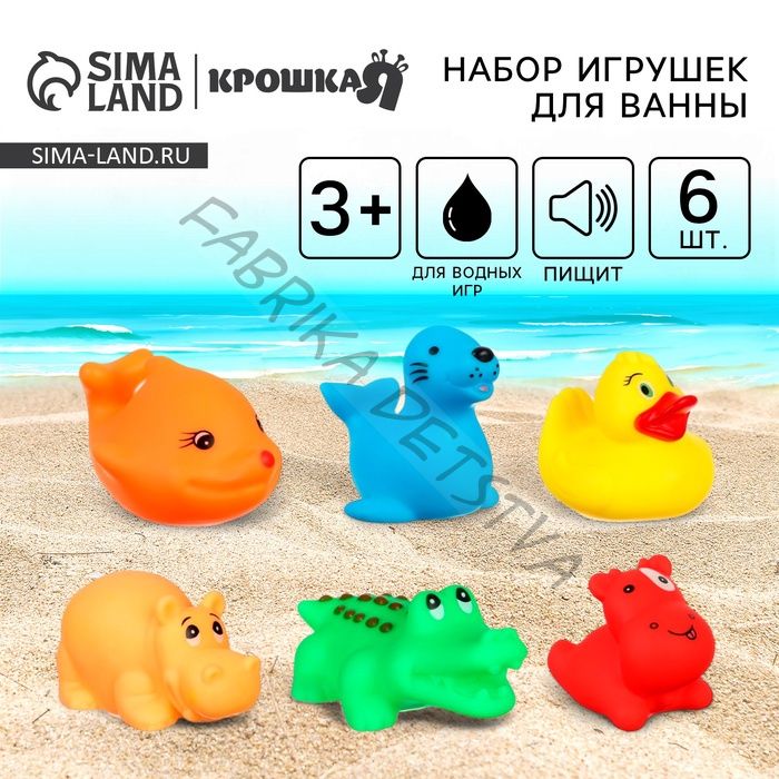 Резиновые игрушки для ванны «Малыши», 6 шт., с пищалкой, Крошка Я