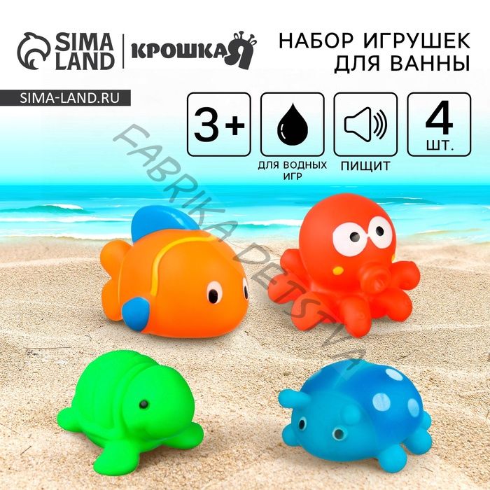Резиновые игрушки для ванны «Малыши», с пищалкой, 4 шт., Крошка Я