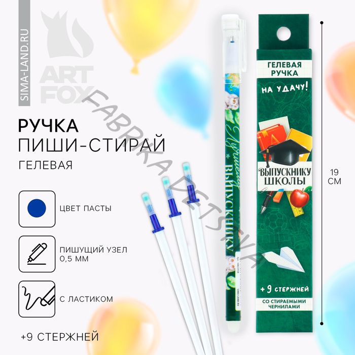 Ручка пиши-стирай, 9 стержней, синяя паста, гелевая, 0.5 мм, набор,«Выпускнику школы»