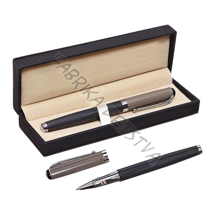 Ручка-роллер подарочная Calligrata «Классика», в футляре кожзам, корпус серый с серебристым