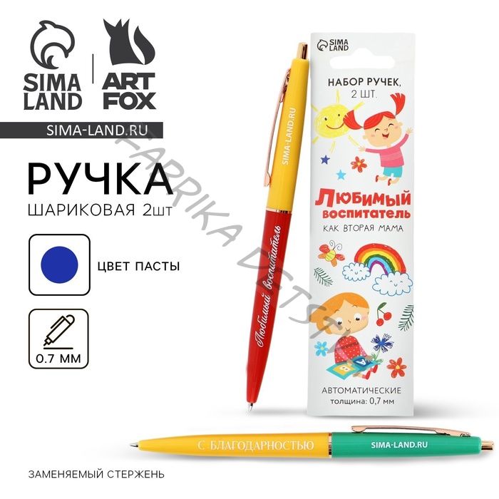 Ручка шариковая, синяя паста, 0.7 мм, пластик, автоматическая, набор из 2 шт. «Любимый воспитатель»