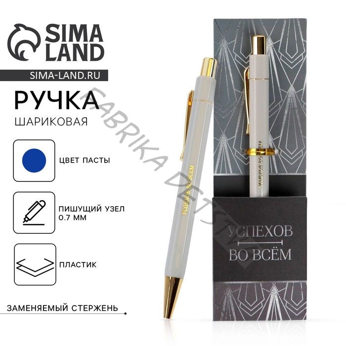 Ручка шариковая, синяя паста 0.7 мм пластик с тиснением на корпусе «Успехов во всем»