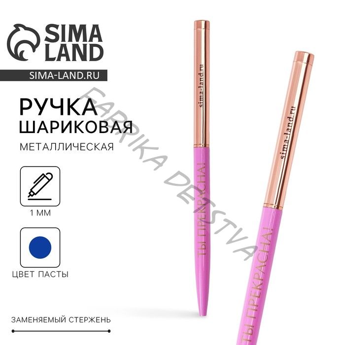 Ручка шариковая, синяя паста, 1.0 мм, металлическая с поворотным механизмом «Ты прекрасна!»