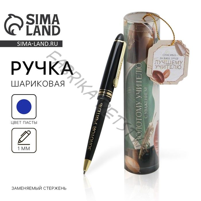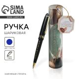 Ручка шариковая, синяя паста, 1 мм, пластик, автоматическая, в тубусе «Золотому учителю, с уважением!»