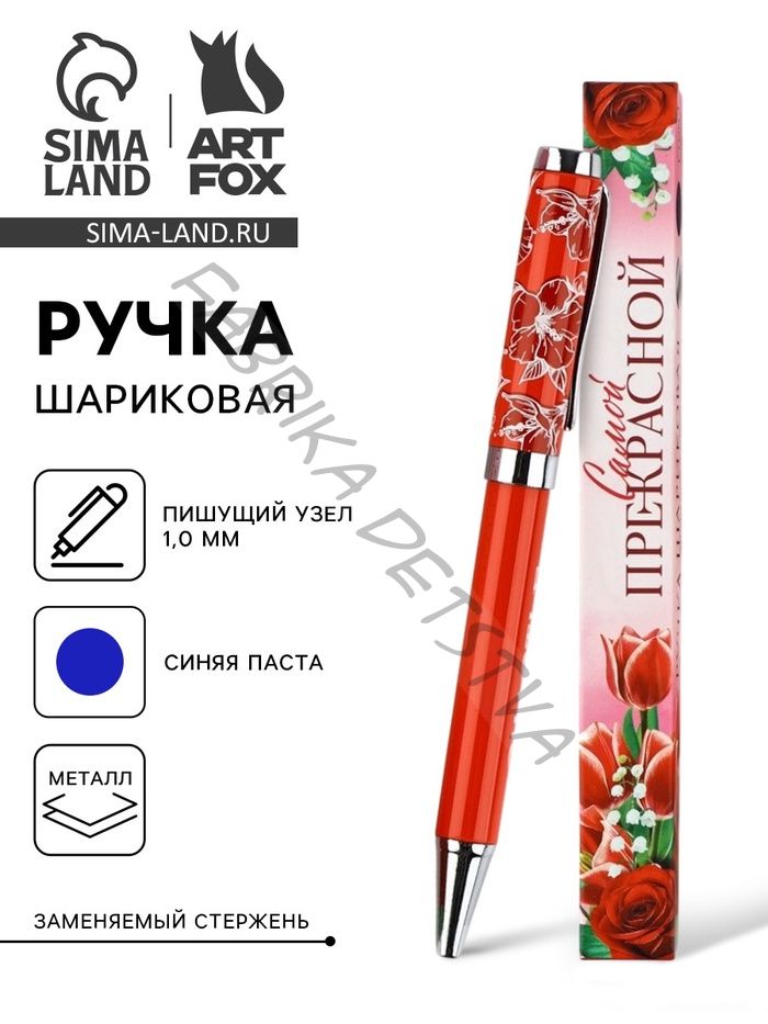 Ручка шариковая, синяя паста металлический корпус в коробке, 1.0 мм «Самой прекрасной»