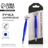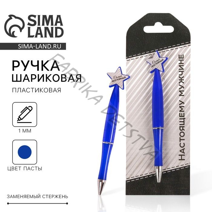 Ручка шариковая, синяя паста, пластик, со звездой, на подложке- погон «Настоящему мужчине»