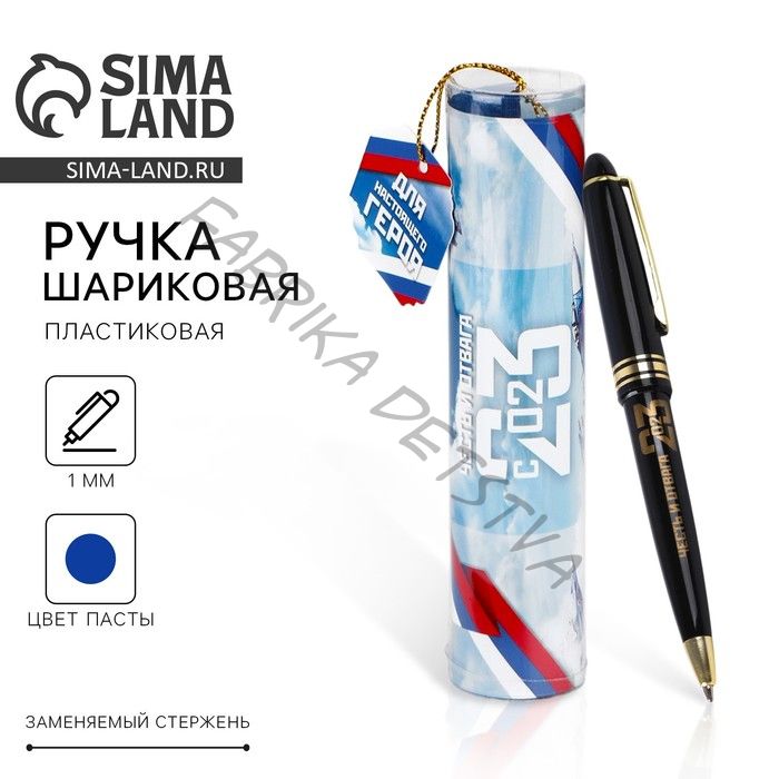 Ручка шариковая синяя паста в тубусе «23 февраля», пластик