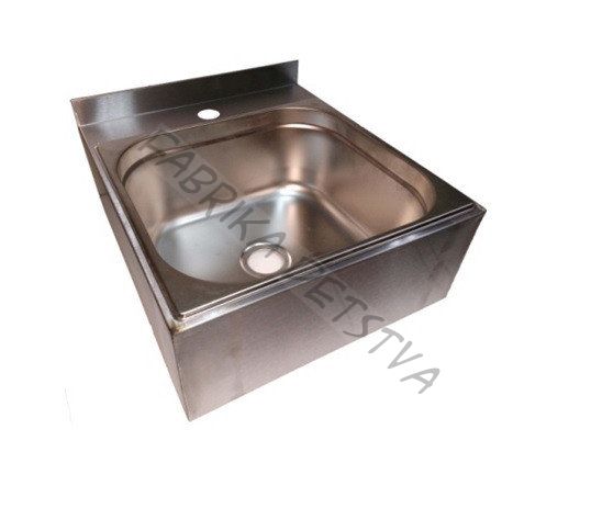 Рукомойник выполнен из нержавеющей стали марки AISI 430, толщиной 0,8 мм., чаша-вкладыш цельнотянутая 340х310х150, каркас нержавеющий/оцинкованный, отверстие под смеситель