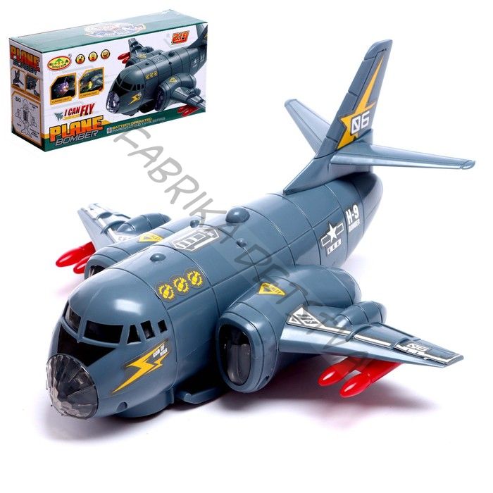 Самолет «Транспортный», работает от батареек, световые и звуковые эффекты, цвет серый