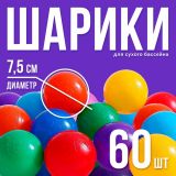 Шарики для сухого бассейна с рисунком, диаметр шара 7,5 см, набор 60 штук, разноцветные
