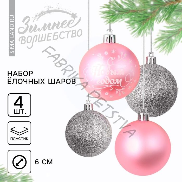 Шары ёлочные «С Новым годом!», пластик, d=6, 4 шт., розовые, серебристые