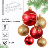 Шары ёлочные новогодние «Мечтай!!», пластик, d=6, 6 шт., красный, золотой