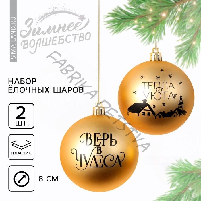 Шары ёлочные новогодние «Тепла и уюта!», пластик, d=8, 2 шт., золотые
