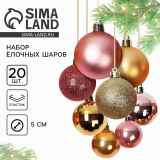 Шары ёлочные новогодние, d=5 см, 20 шт., золотые, розовые