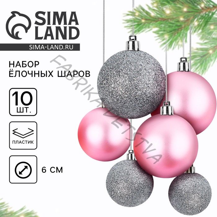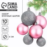 Шары ёлочные новогодние, d=6 см, 10 шт., розовые, серебристые