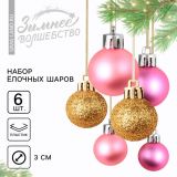 Шары ёлочные новогодние, пластик, d=3 см, 6 шт., розовые, золотые