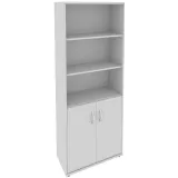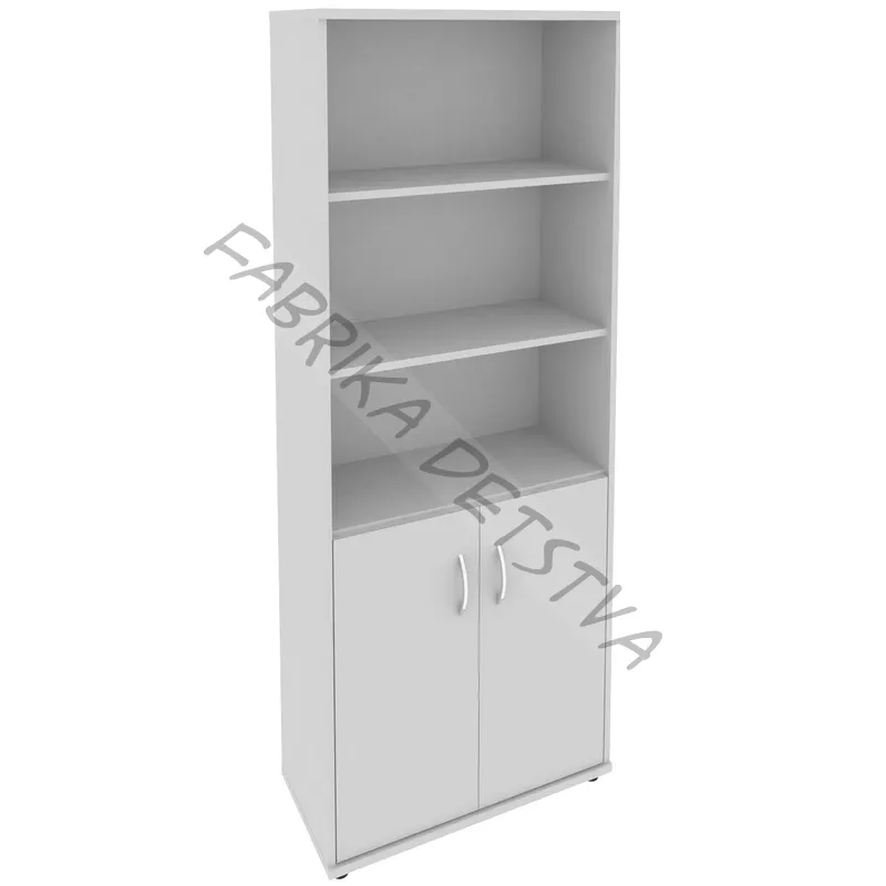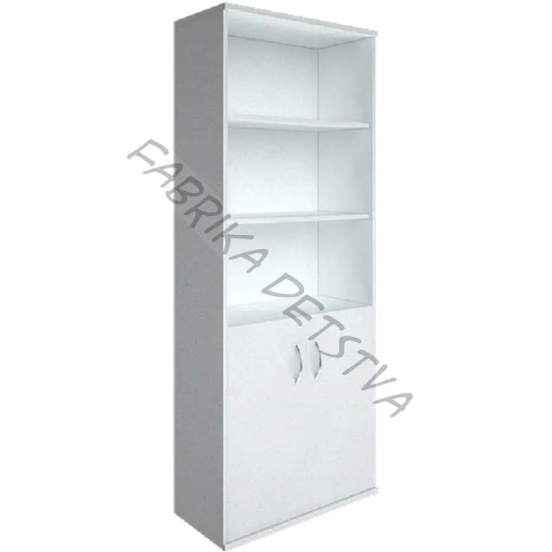 Шкаф изготовлен из ЛДСП толщиной 16 мм, отделан кантом ПВХ 0,4 мм. Размер 854х375х1820 мм. Задняя стенка изготовлена из ламинированного МДФ, толщиной 3,2 мм, в цвет ДСП из двух частей, которые соединяются между собой с помощью специального армированного скотча. Крепится задняя стенка гвоздями. Нижняя половина закрывается двумя дверками. Комплектуется четырьмя полками: одна врезная и три вкладных. Регулируемые опоры компенсируют неровности пола.