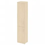Шкаф изготовлен из ЛДСП толщиной 16 мм, отделан кантом ПВХ 0,4 мм. Внешний габарит 429х375х1820 мм. Задняя стенка изготовлена из ламинированного МДФ, толщиной 3,2 мм, в цвет ДСП и крепится гвоздями. Две двери закрывают нижний и верхний отсеки. Крепление петель дверей позволяет устанавливать их как на правую, так и на левую сторону. Комплектуется четырьмя полками: одна врезная и три вкладных. Регулируемые опоры компенсируют неровности пола.