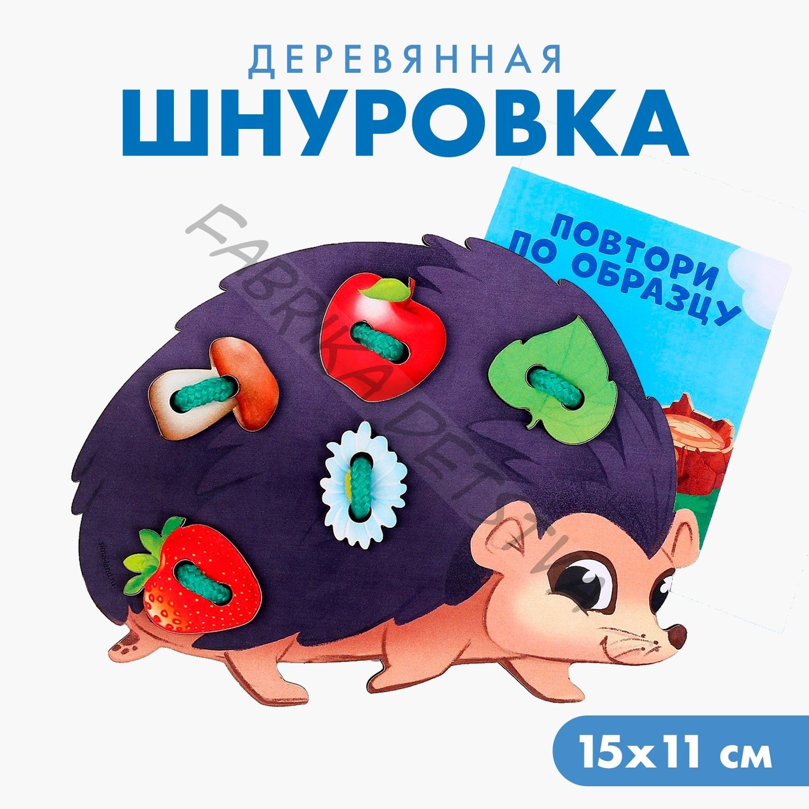 • Деревянная основа в форме ёжика и съёмные детали для шнуровки.