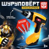 Шуруповёрт детский, 3 насадки, работает от батареек, Трансформеры