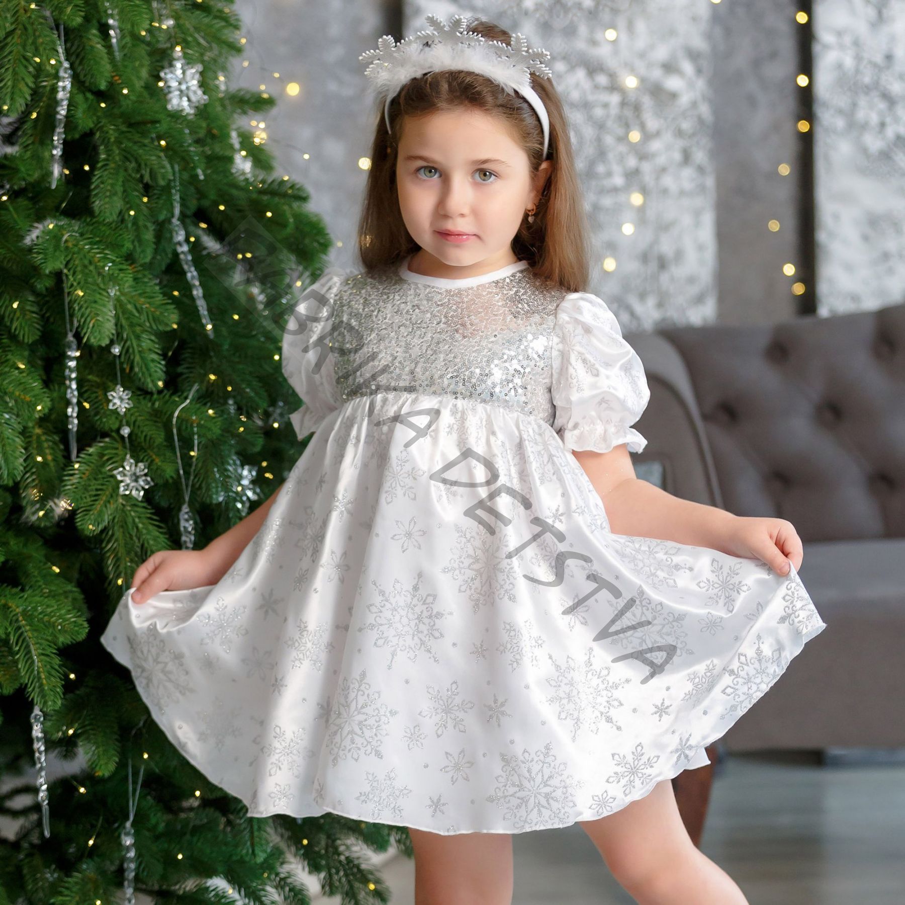 Карнавальное изделие детское "Снежинка "Серебристая"". Наряд подойдет для празднования Нового года, театральных постановок и костюмированных праздников.